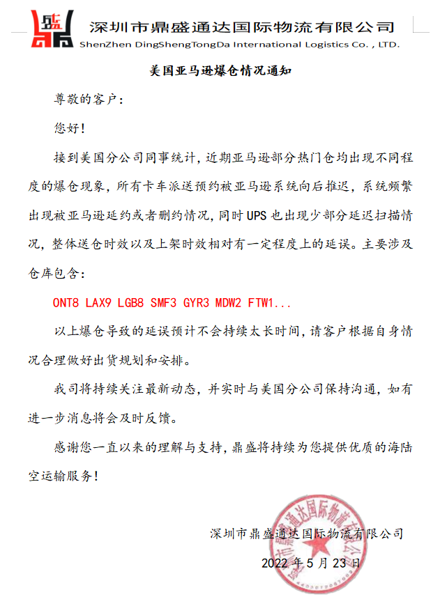 美国亚马逊爆仓最新情况通知