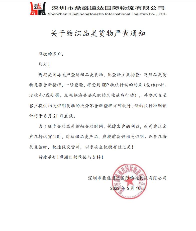 关于纺织类货物严查通知
